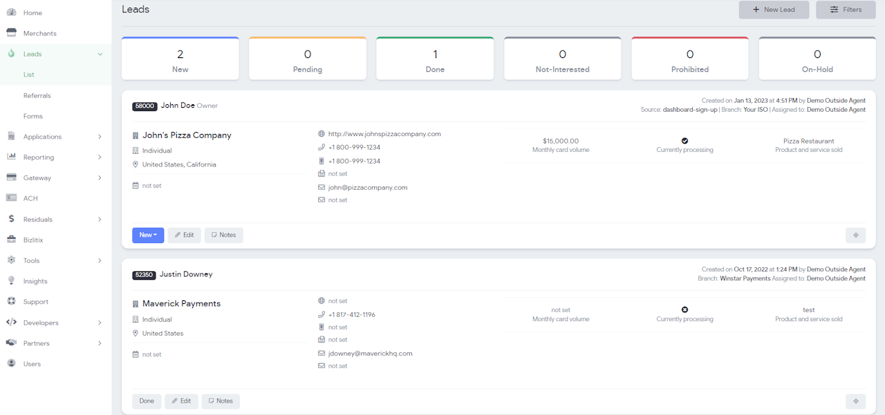 When viewing the lead list, if a user has permission, they may edit or change the status of current leads.