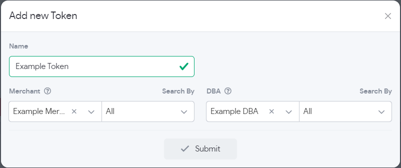 To add a new token, click the '+ Add Token' button at the top of the page. Once done, click 'Submit' button to save your token.